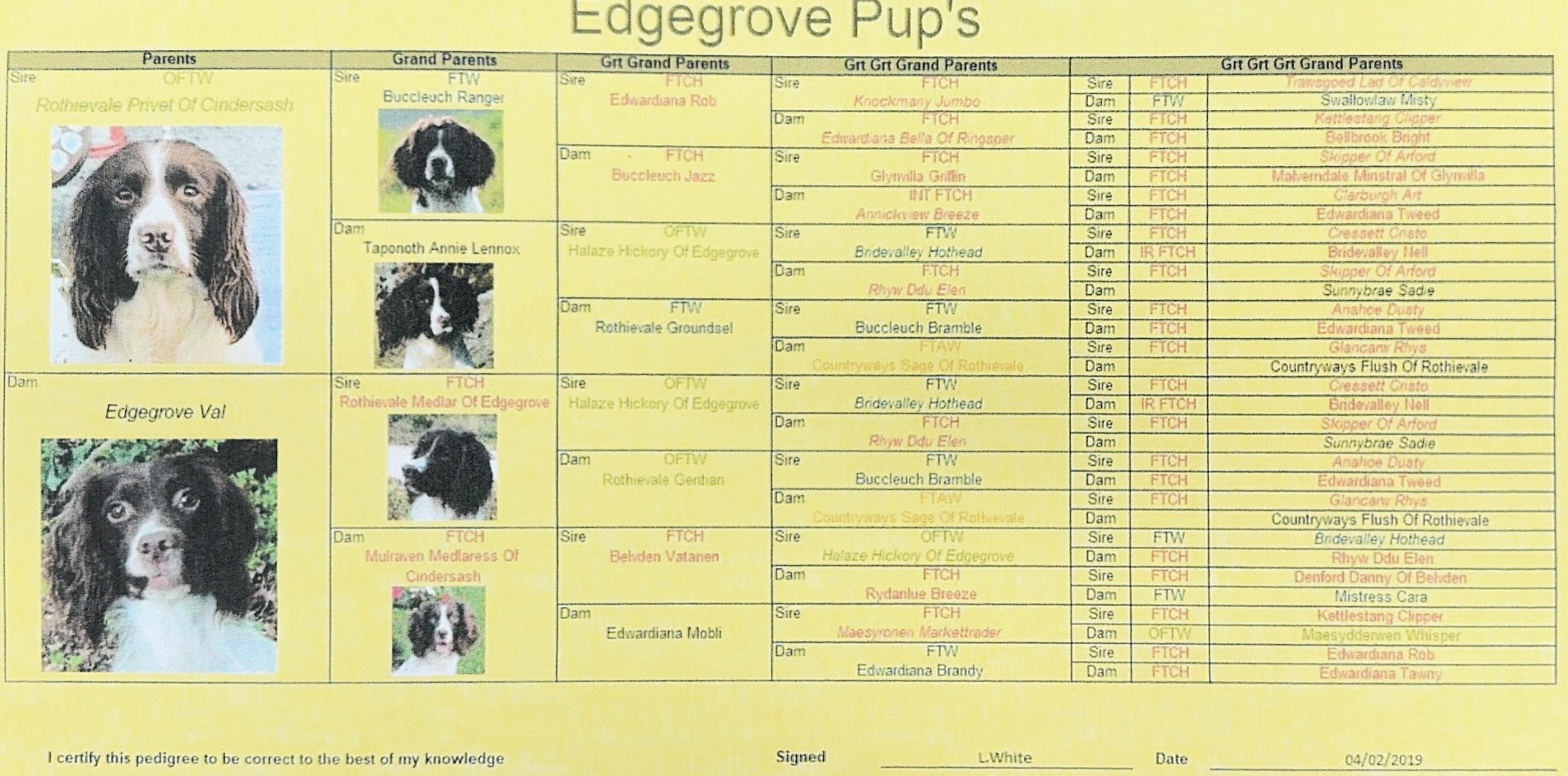 The above sounds very scientific, but on the other hand over-simplifies the problems and chance of breeding top quality spaniels or any animals for that matter. However, it does shine some light on one fact that any breeder should take into account and that is of course the importance of the female line. For it is the positive traits that the female contains that the breeder is wishing to replicate. This does not mean that the male line is unimportant or any old sire is acceptable. Sires who, through their own bloodlines, have also demonstrated their ability to pass on similarly required traits should be considered for breeding.